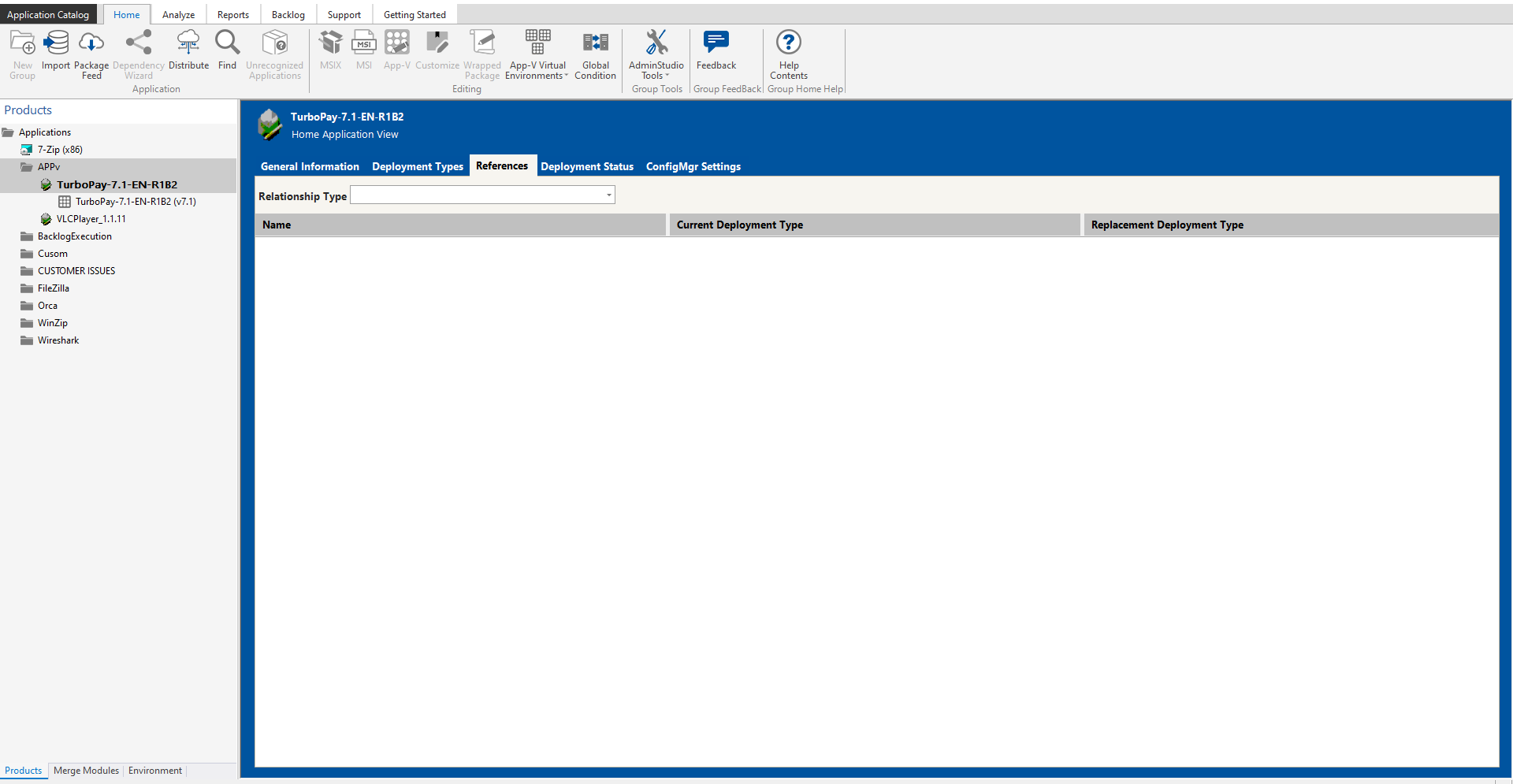On the References tab of the Application View , you can view a list of packages that are dependent upon this application or that supersede this application.
