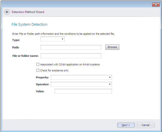 Associated with 32-bit application on 64-bit systemsSelect this option if you want to restrict this detection method to a file or folder that is associated with a 32-bit application on a 64-bit system.