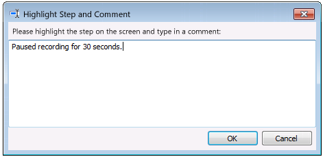 - Add Comment—Click to pause the recording and open the Highlight Step and Comment dialog box where you can enter a comment. This comment will appear in the generated output file.