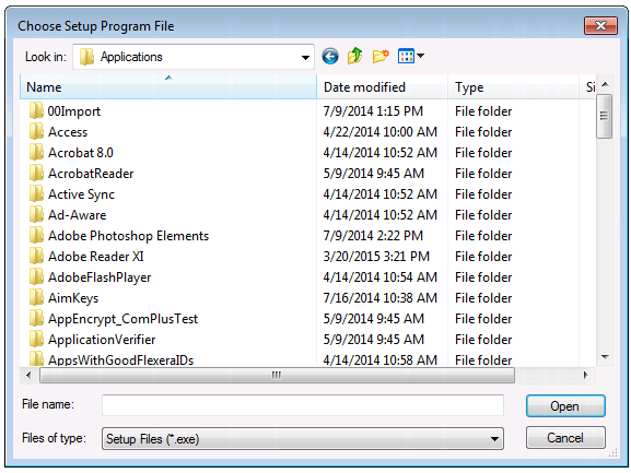 ) button next to the Program File field to open the Choose Setup Program File dialog box.