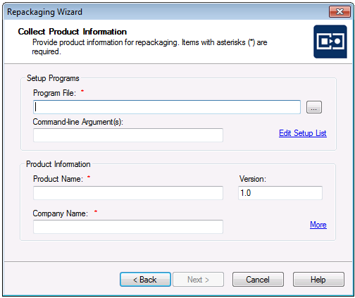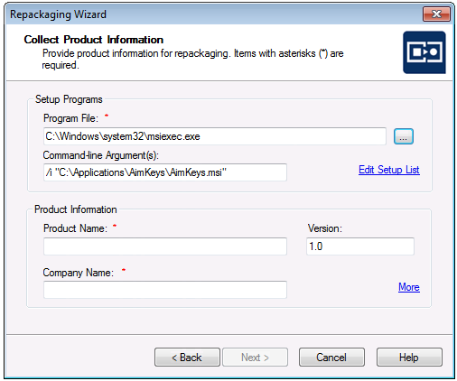 *.irp) that you just created. - Continue with the instructions in Working With Repackager Projects.