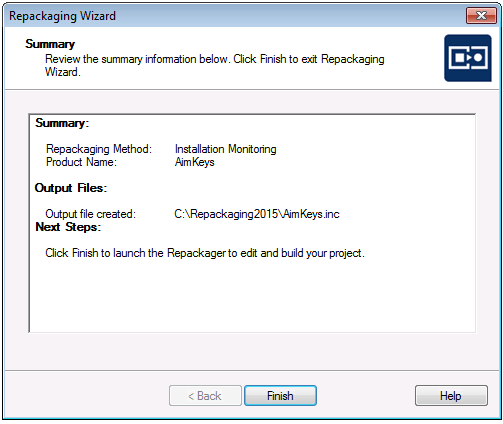 - Click Finish . Repackager launches and opens the Repackager project file (