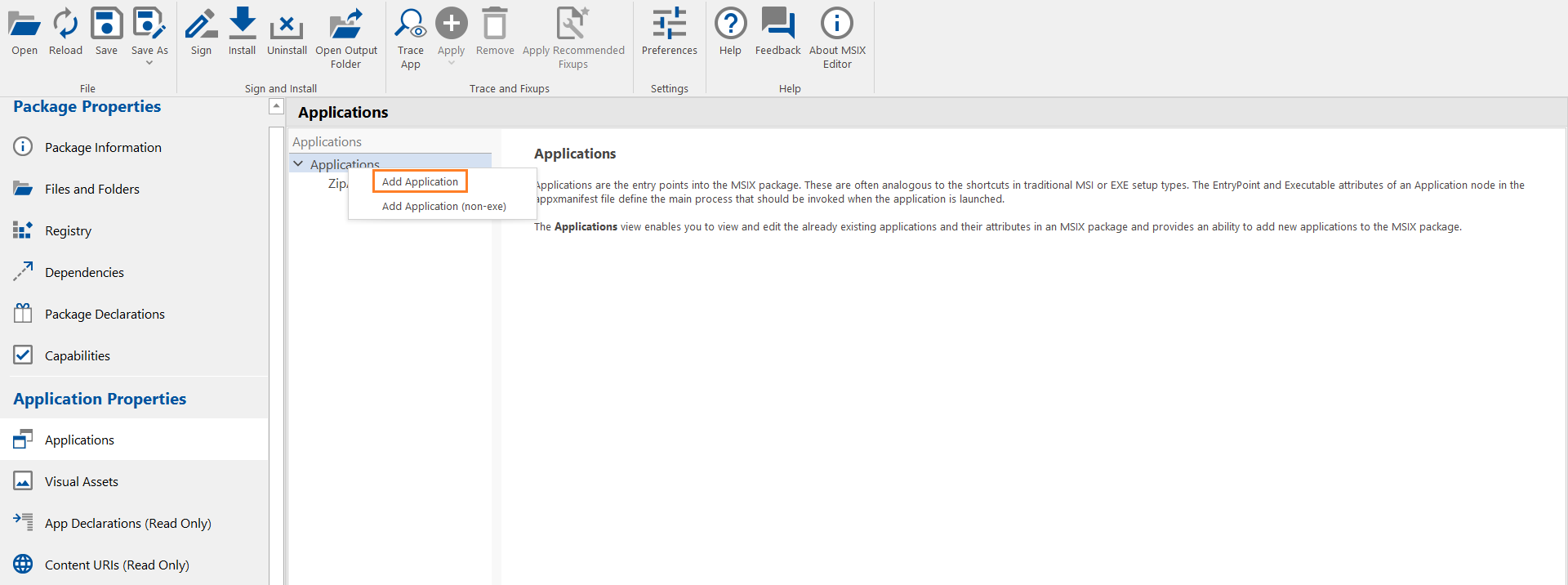 - Right-click on the Applications node, and then select Add Application from the context menu.